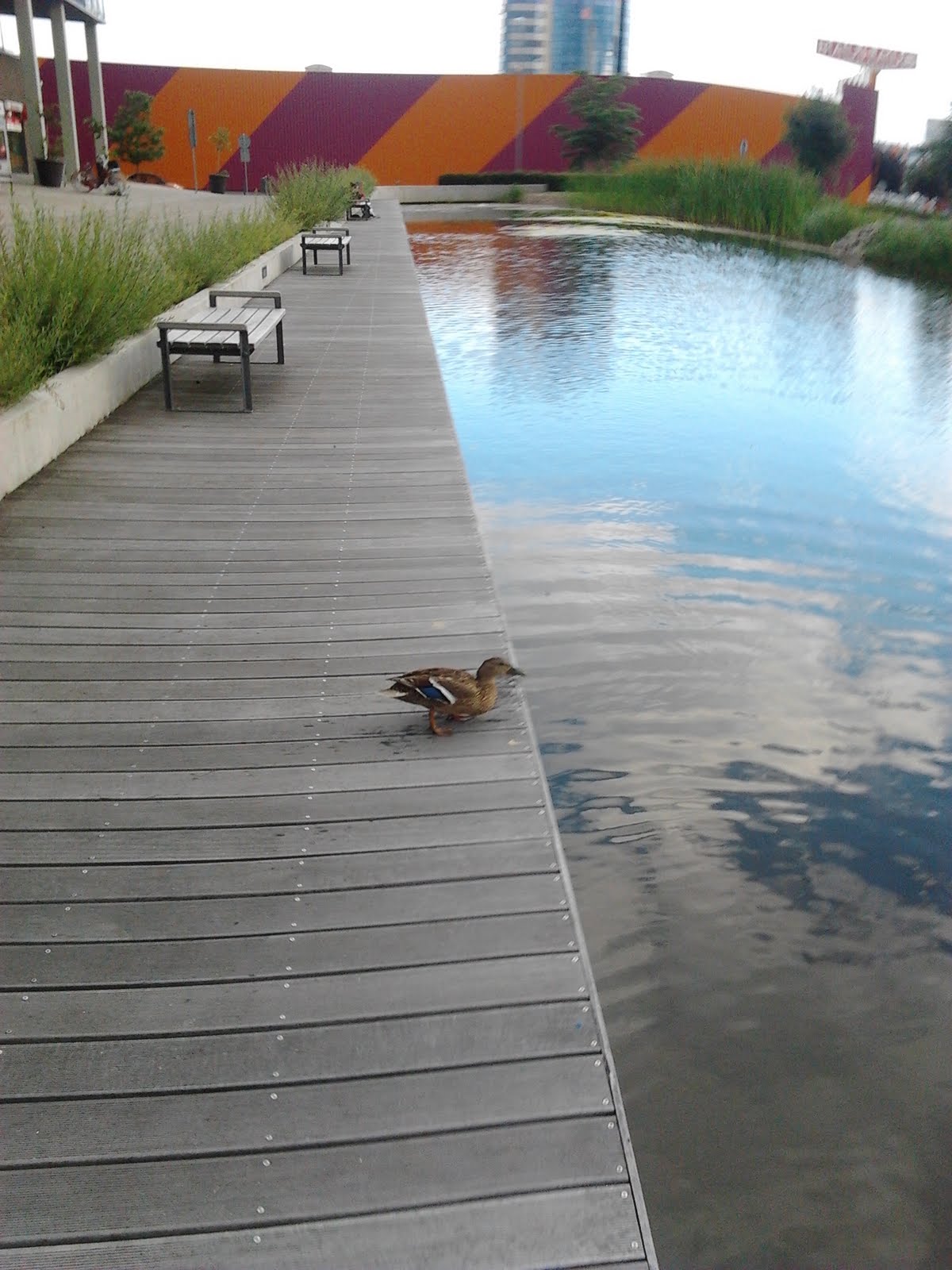 Úgy indultam, hogy a nemrég felfedezett, a falunk határától keleti irányba mutató 3-as elágazás harmadik ágát veszem nagyító alá, de aztán hirtelen felindulásból lefordultam délnek, mert a távolban erdős hegyeket véltem látni, és 3 km-nyi napraforgóföld után ki is lyukadtam egy kisebb erdőfolthoz. Sajnos bele nem igen tudtam menni, de innentől a földút 80%-os fedésben vezetett tovább: jobbra erdő, balra földek. Most kifejezetten felhős volt az ég, de úgy ítéltem, hogy az árnyék később, napos időben is elég lesz. 5km-nél jött az első meglepi, találtam egy kicsi (mesterséges) tavat! Úgy megörültem neki, hogy majdnem belementem, de aztán elhatároztam, hogy az úszásnak várnia kell a visszaútig, és mentem tovább. 2 km-t futottam a gáton, ahol Brno szennyvíz-csatornája egészen folyóvá szélesedett, itt már alig bírtam a kísértéssel, végül azzal győztem meg magam, hogy a tó valószínűleg tisztább lesz. A tavak ugye köztudomásulag öntisztulnak :)